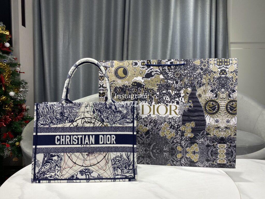 Top Quality Version:MYLLVV » Dior Blue Five-Pointed Star Pattern Embroidery Medium Book Tote M1286