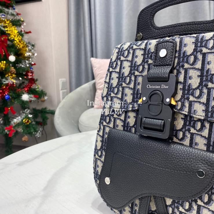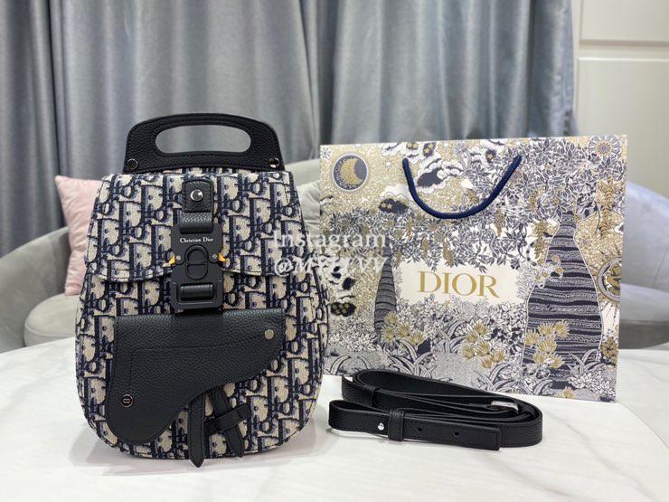 Dimension: 19.0 × 27.5 × 11.5 cm Top Quality Version:MYLLVV » Dior Blue Oblique Pattern Embroidery Mini Backpack