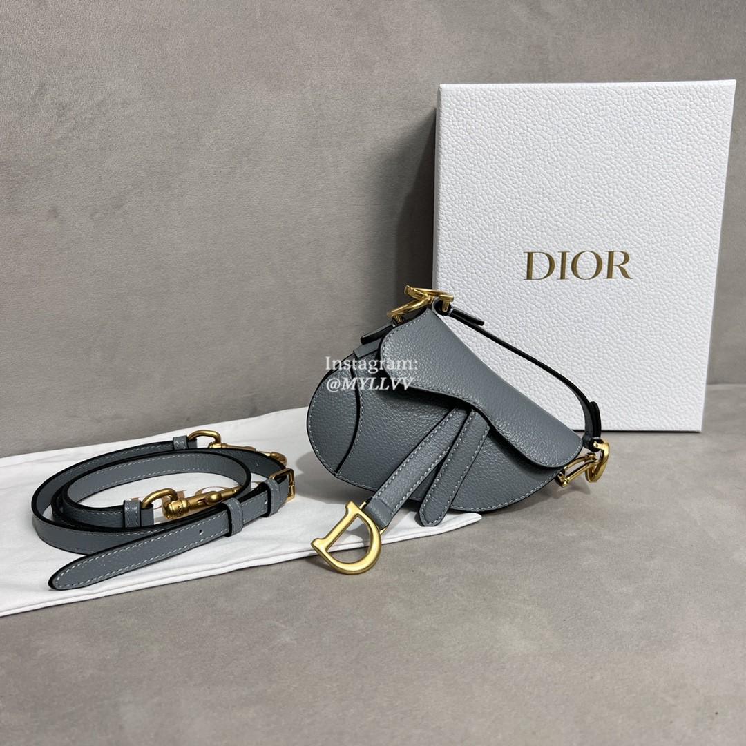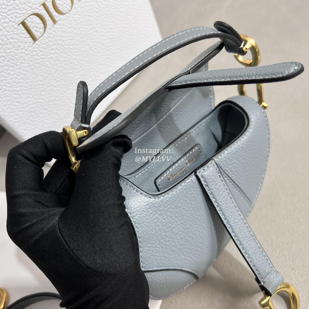 Dimension: 14.0 × 11.0 × 4.5 cm Top Quality Version:MYLLVV » Dior Cloud Blue Goatskin Saddle Bag With Strap