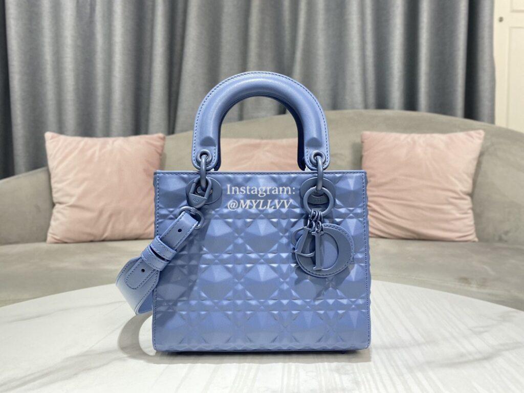 Top Quality Version:MYLLVV » Dior Denim Blue Cannage Calfskin With Diamond Motif Small Lady Dior My ABCDior Bag