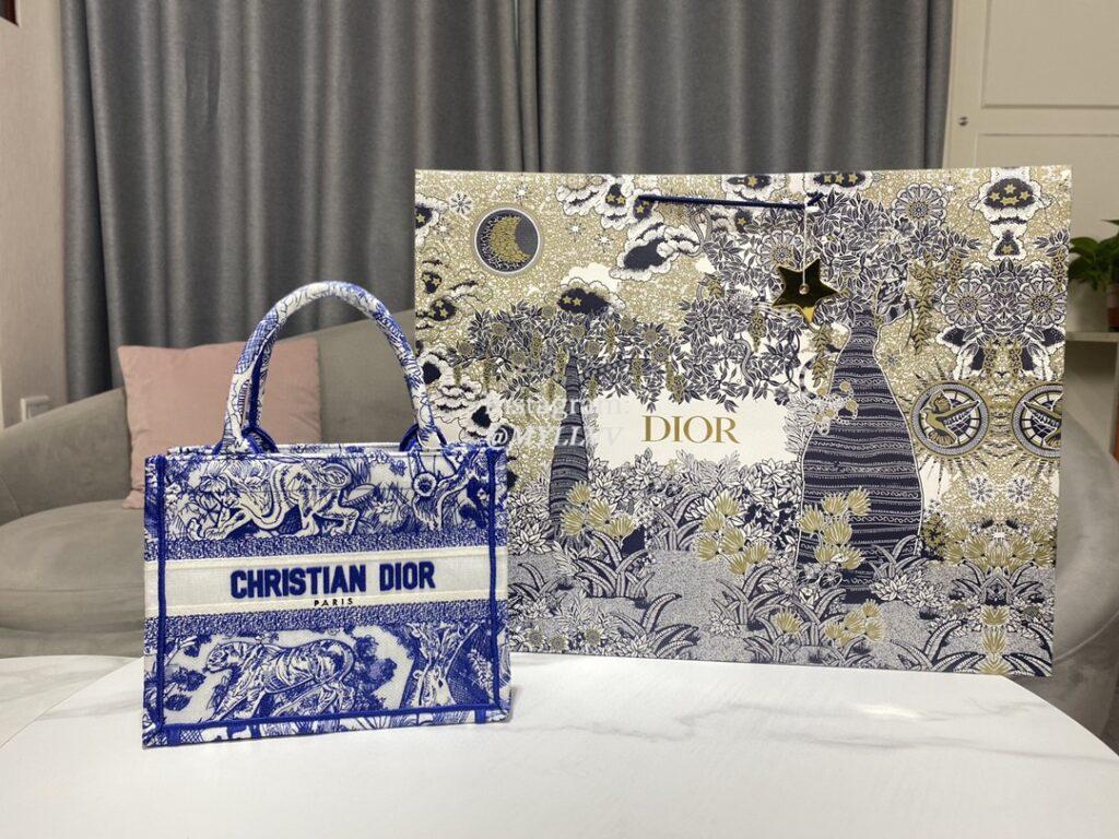 Top Quality Version:MYLLVV » Dior Fluorescence Blue Pattern Embroidery Small Dior Book Tote