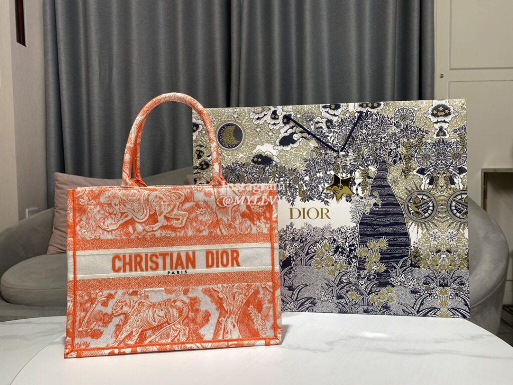 Top Quality Version:MYLLVV » Dior Fluorescence Orange Pattern Embroidery Medium Dior Book Tote
