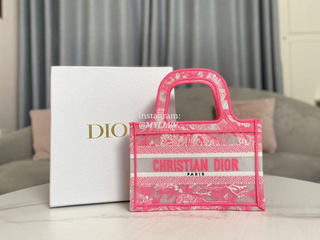 Top Quality Version:MYLLVV » Dior Fluorescence Pink Pattern Embroidery Small Dior Book Tote