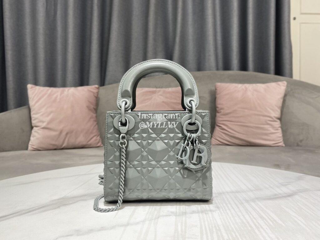 Top Quality Version:MYLLVV » Dior Grey Cannage Calfskin With Diamond Motif Mini Lady Dior Bag