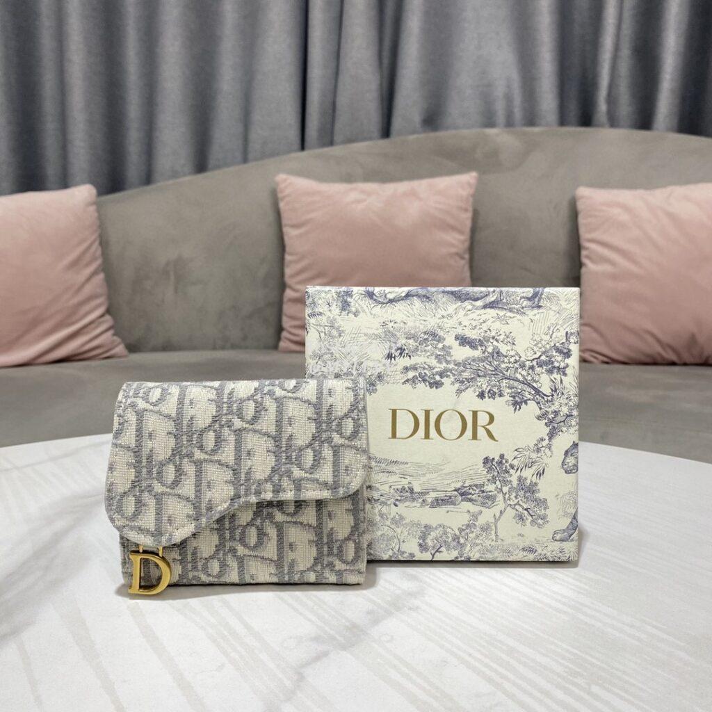 Dimensions: 10.0 × 9.0 × 2.5 cm Top Quality Version:MYLLVV » Dior Grey Dior Oblique Jacquard Saddle Lotus Wallet D6603