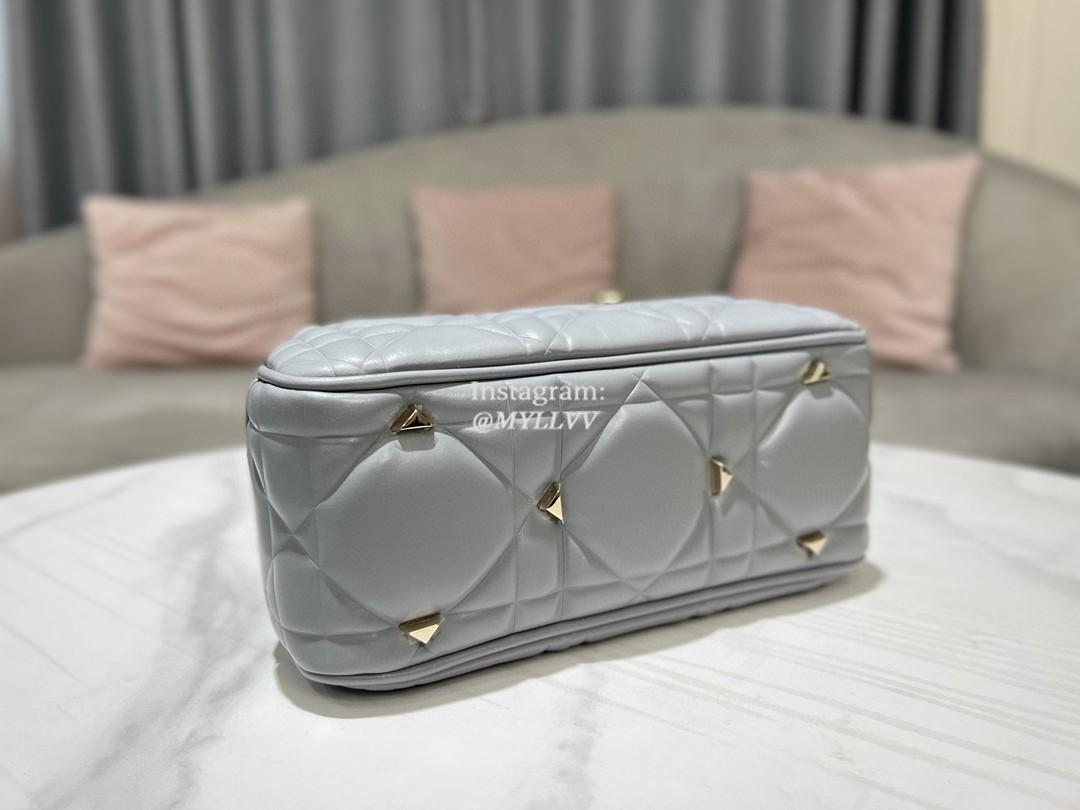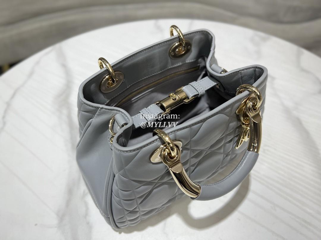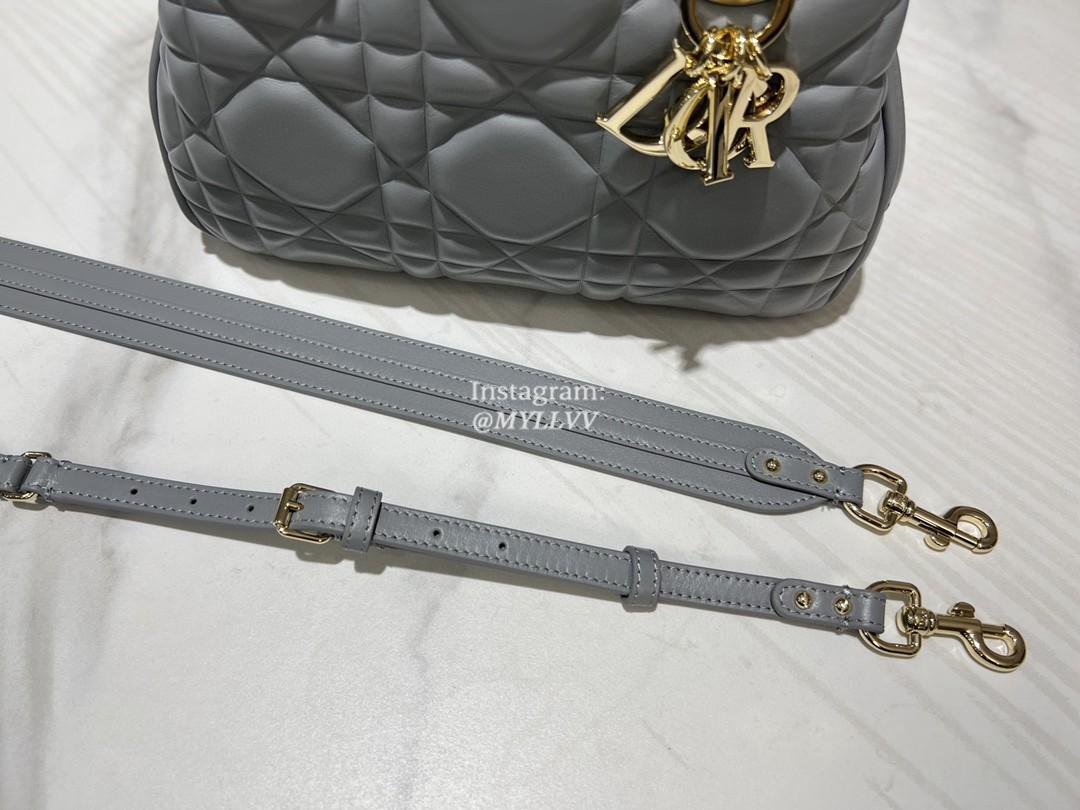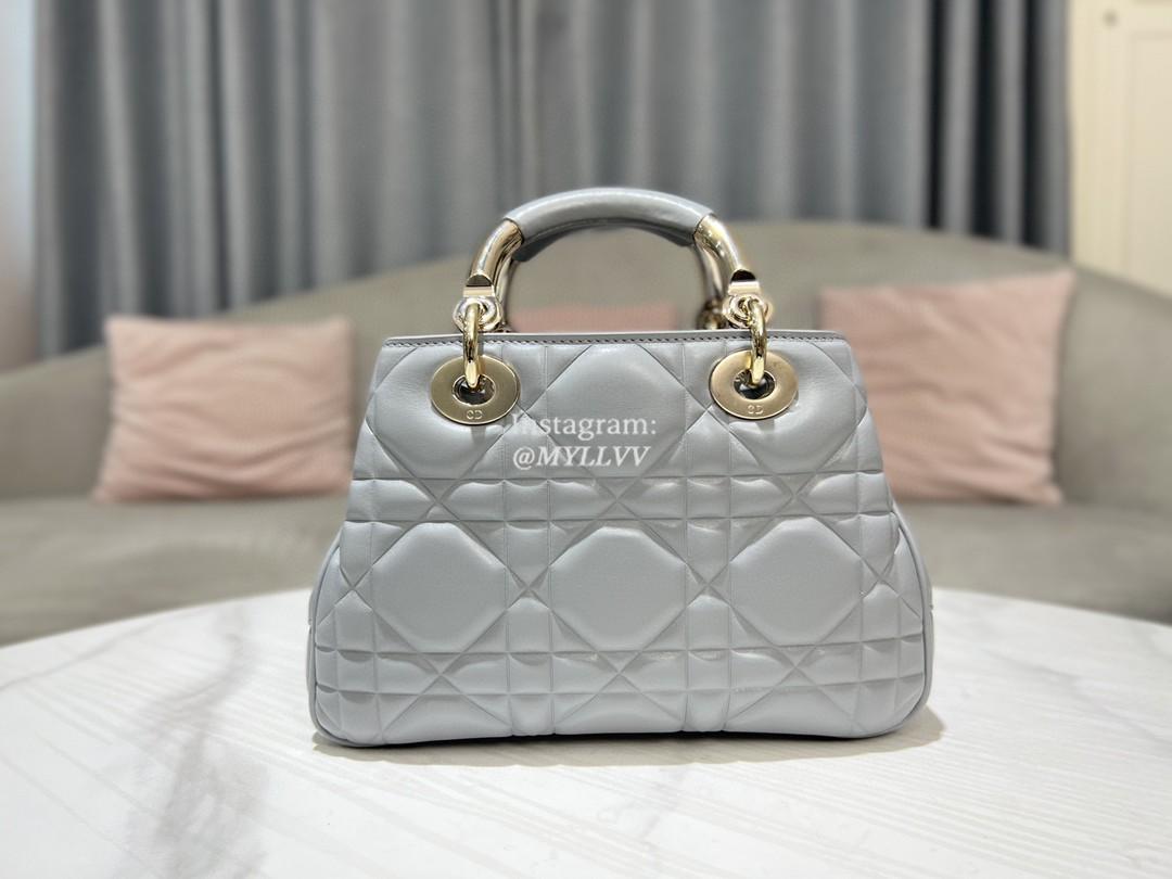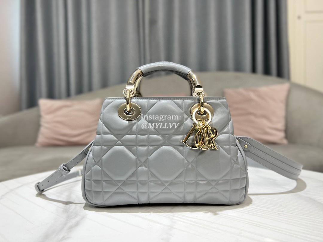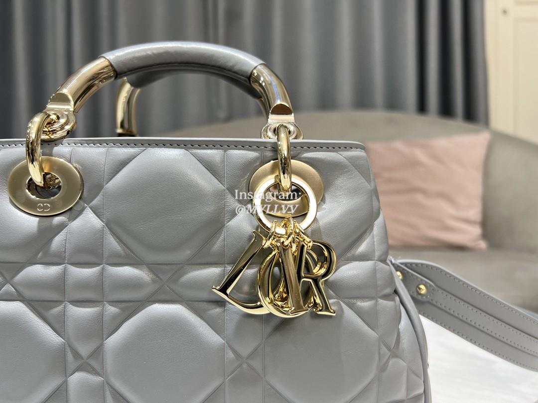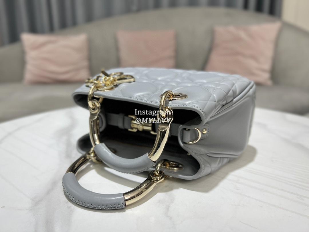 Top Quality Version:MYLLVV » Dior Grey Gold Calfskin Lady Dior Small Top Handle Bag 0062-1