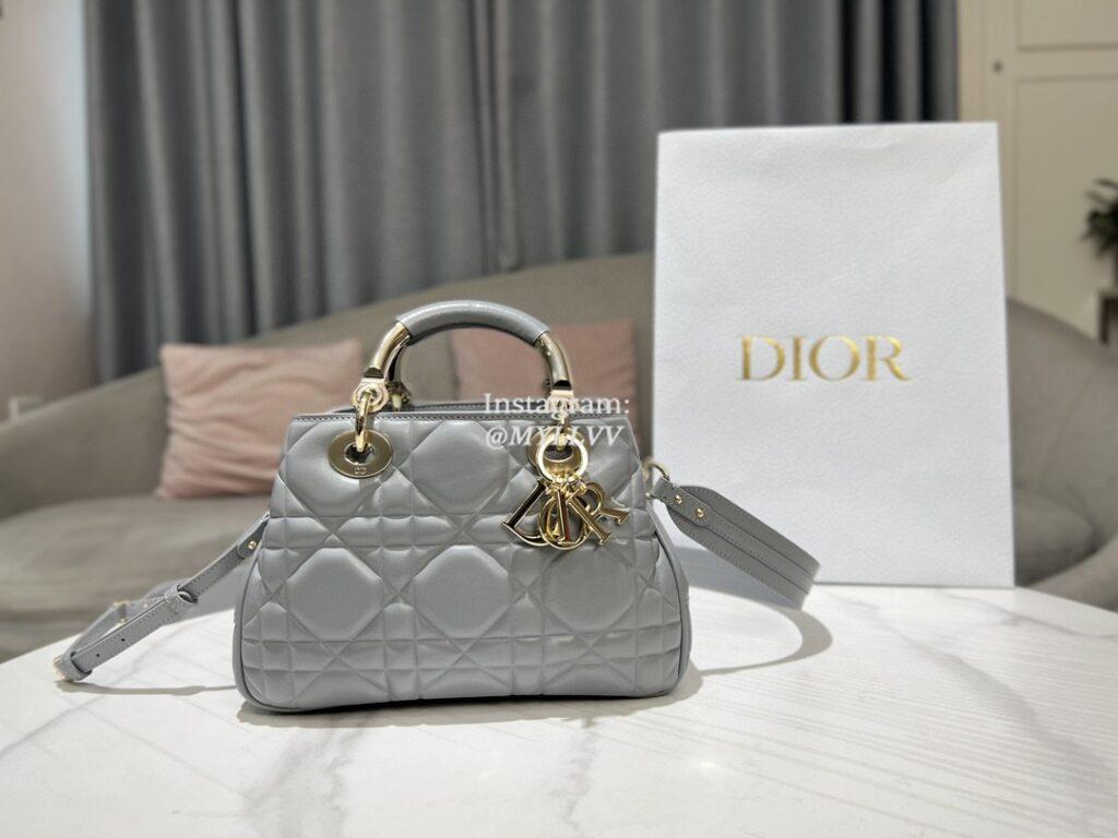 Top Quality Version:MYLLVV » Dior Grey Gold Calfskin Lady Dior Small Top Handle Bag 0062-1