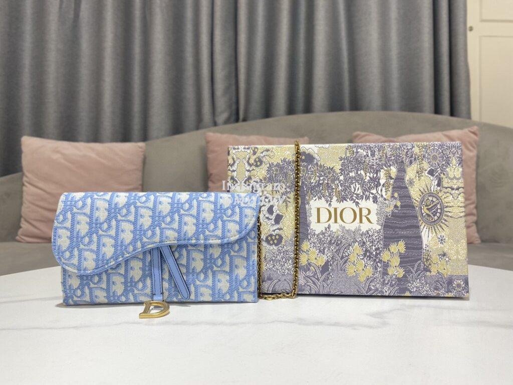 Top Quality Version:MYLLVV » Dior Light Blue Dior Oblique Jacquard Long Saddle Wallet With Chain 803