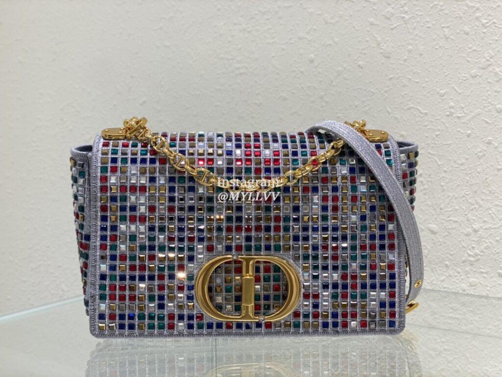 Top Quality Version:MYLLVV » Dior Light Purple Cowhide And Colorful Gemstone 30 Montaigne Medium Shoulder Bag