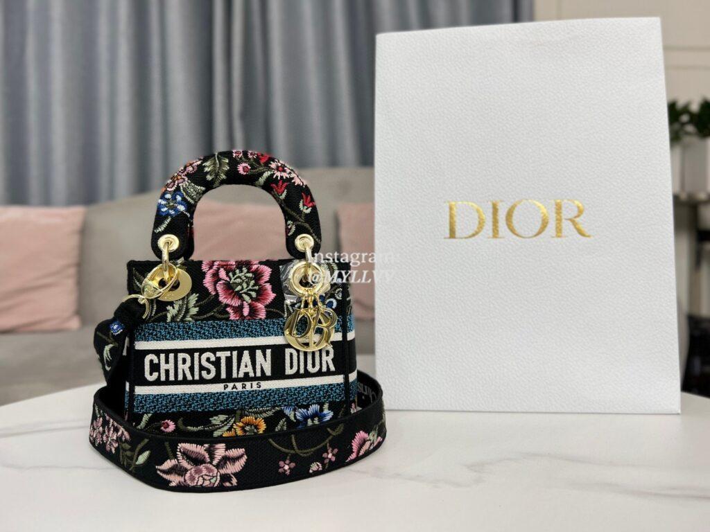 Top Quality Version:MYLLVV » Dior Multicoloured Petites Fleurs Pattern Embroidery Mini D-Lite Handbag