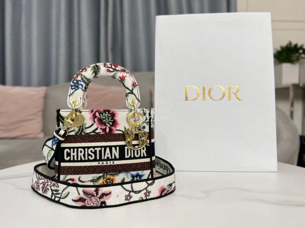 Top Quality Version:MYLLVV » Dior Multicoloured Petites Fleurs Pattern Embroidery Mini D-Lite Handbag