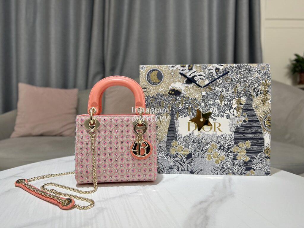 Top Quality Version:MYLLVV » Dior Pink Embroidered Calfskin With Multicolor Sequins Small Lady Dior Bag M0505
