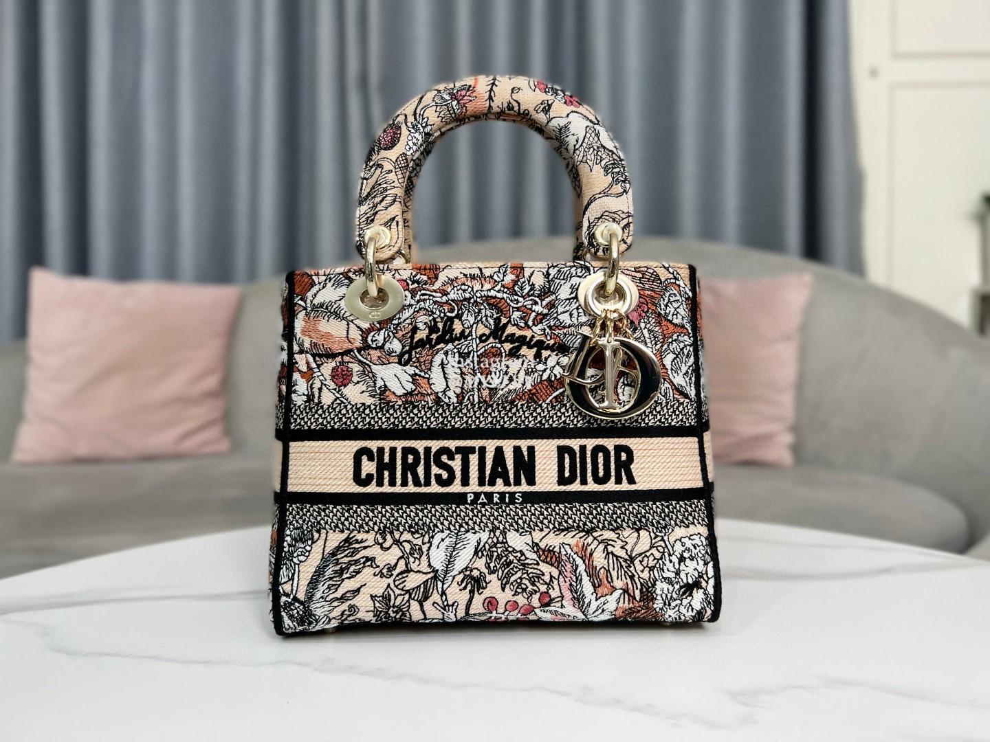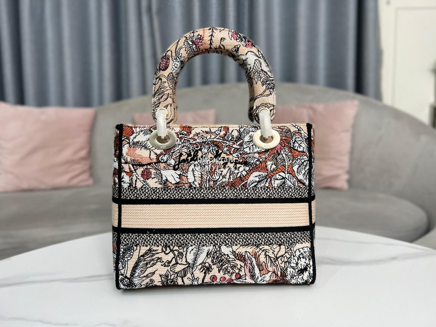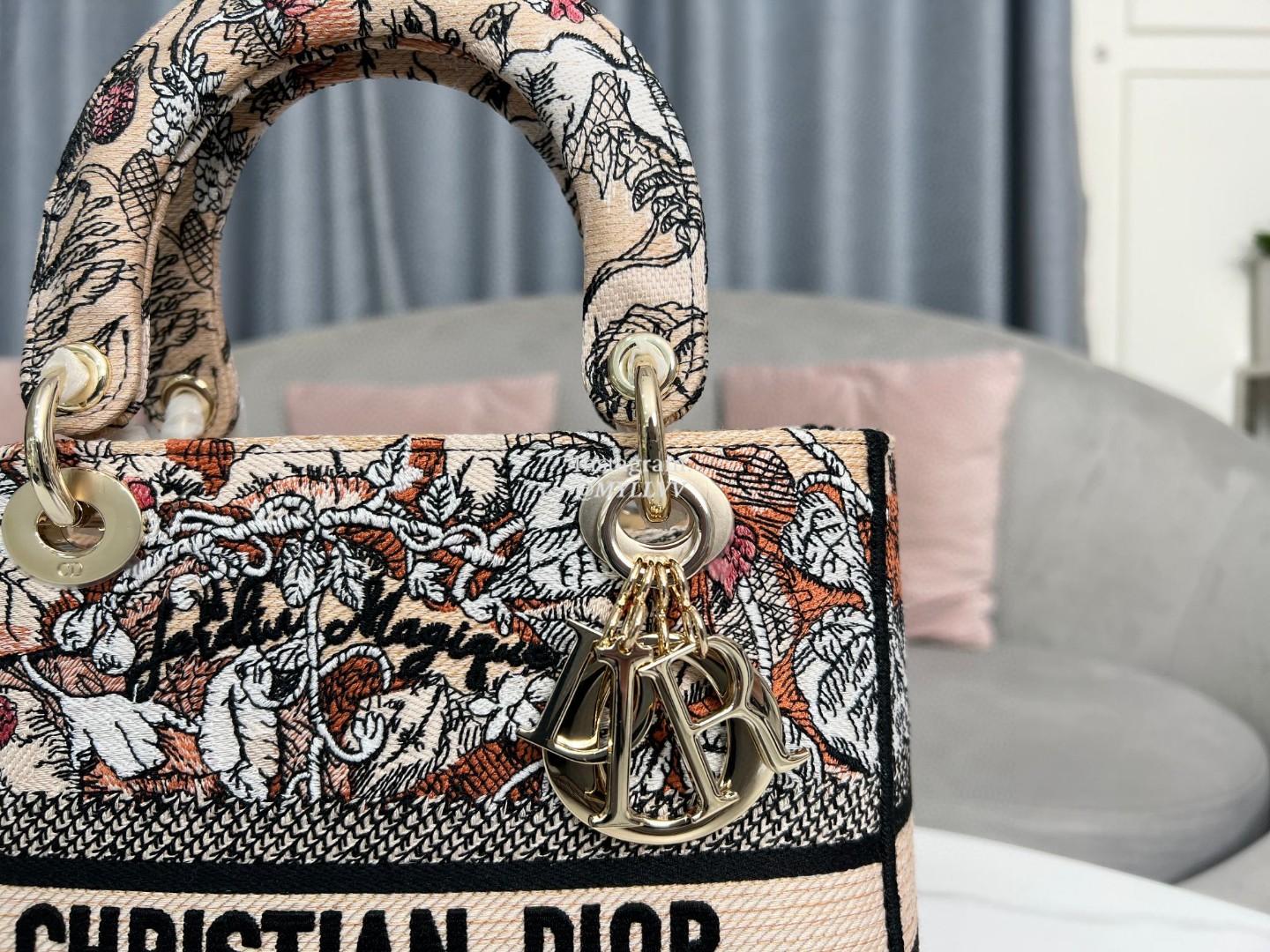 Top Quality Version:MYLLVV » Dior Pink jardin Magique Pattern Embroidery Medium Lady D-Lite Handbag M0565