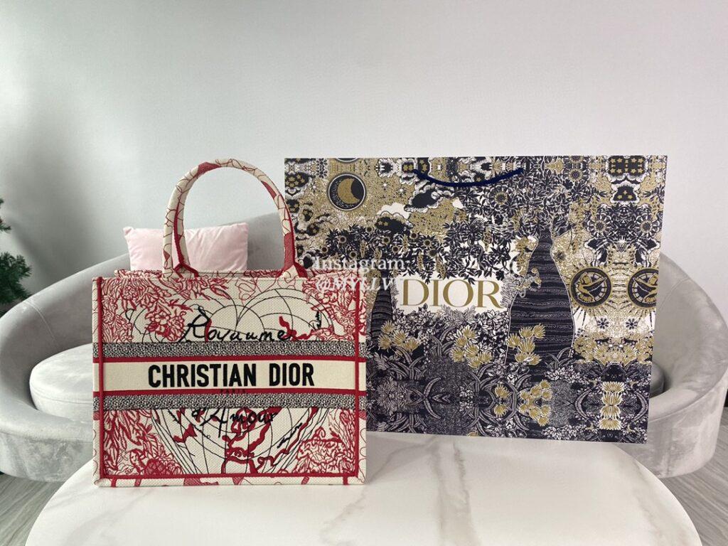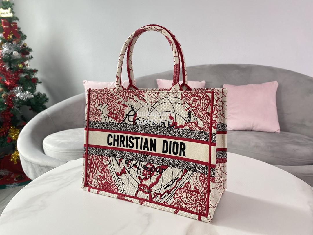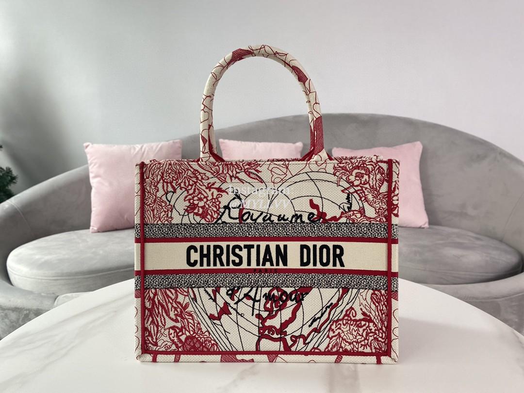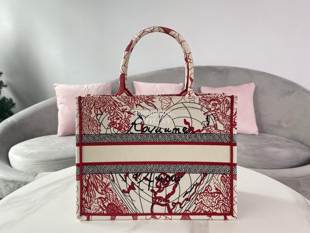 Top Quality Version:MYLLVV » Dior Red D-Royaume d’Amour Pattern Embroidery Medium Dior Book Tote