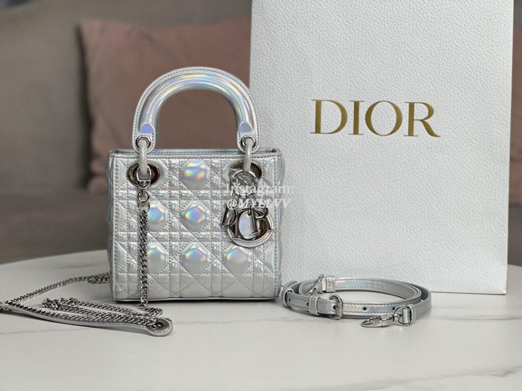 Top Quality Version:MYLLVV » Dior Silver Lambskin Leather Mini Dior Or Lady Dior Handbag 1004