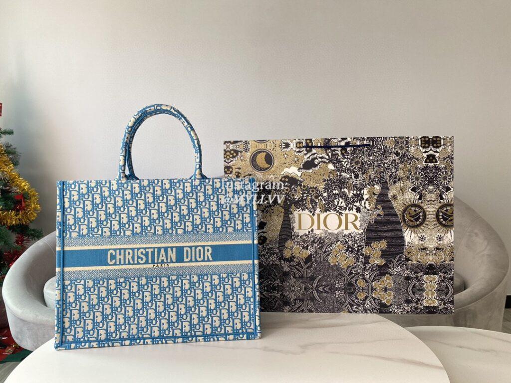 Top Quality Version:MYLLVV » Dior Sky Blue Oblique Pattern Embroidery Large Dior Book Tote