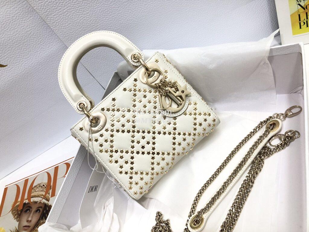 Top Quality Version:MYLLVV » Dior White Lucky Star Cannage Lambskin Mini Lady Dior Bag M0505