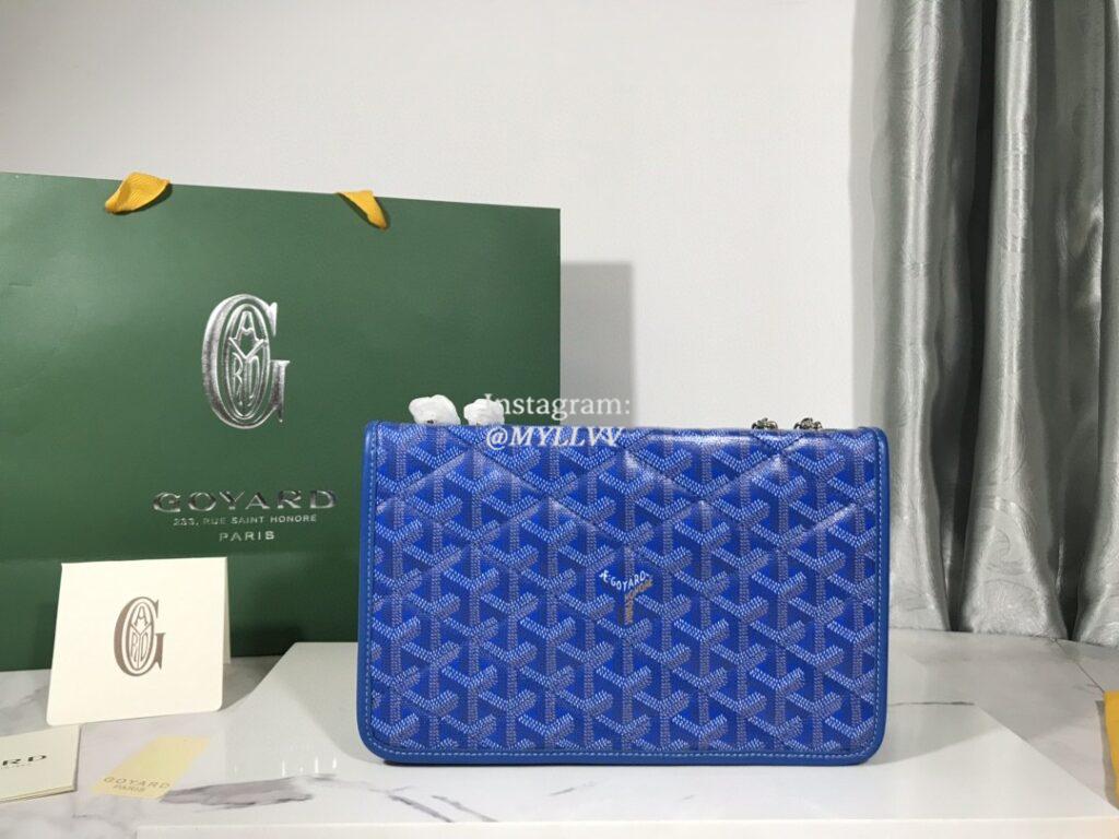 Top Quality Version:MYLLVV » Goyard Goyardine Canvas Chevroches Calfskin Cowhide Alexandre Chain Bag Blue