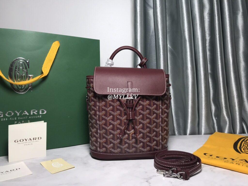 Top Quality Version:MYLLVV » Goyard Goyardine Canvas Chevroches Calfskin Cowhide Alpin Mini Backpack Wine Red 020195