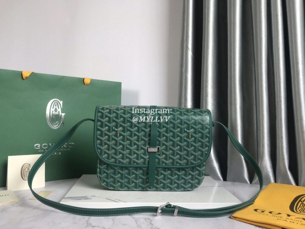 Top Quality Version:MYLLVV » Goyard Goyardine Canvas Chevroches Calfskin Cowhide Belvédère 2 Large Messenger Bag Green