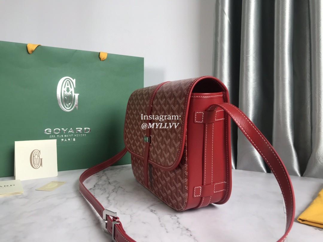 Top Quality Version:MYLLVV » Goyard Goyardine Canvas Chevroches Calfskin Cowhide Belvédère 2 Large Messenger Bag Red