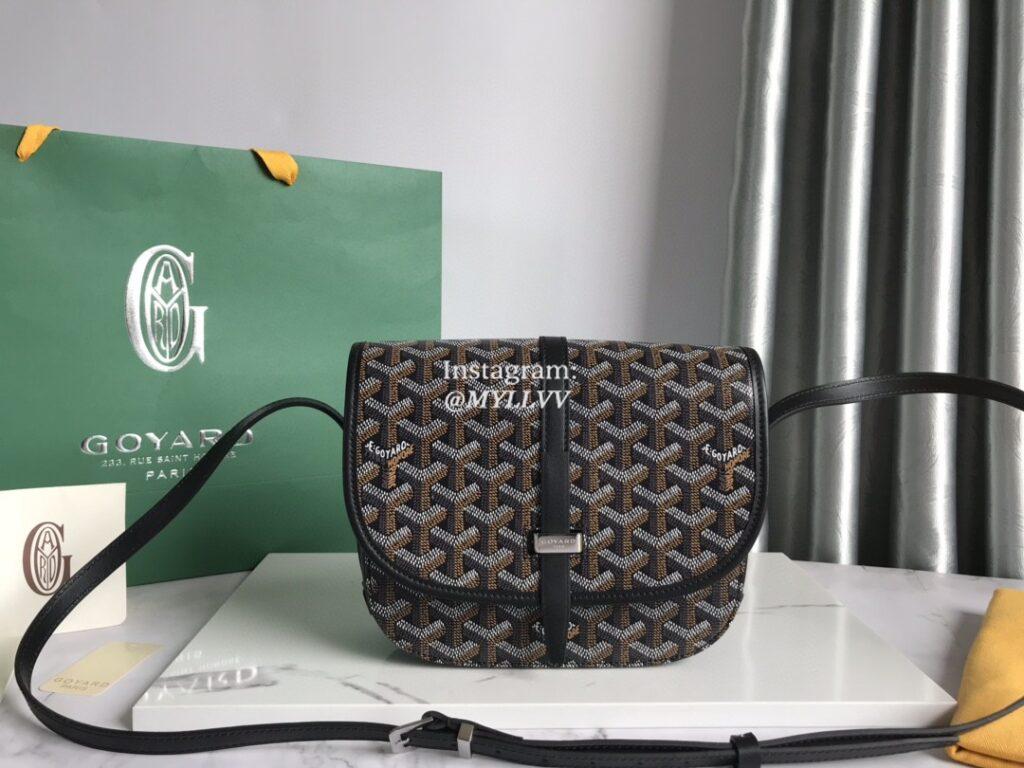 Top Quality Version:MYLLVV » Goyard Goyardine Canvas Chevroches Calfskin Cowhide Belvédère 2 Small Messenger Bag Black