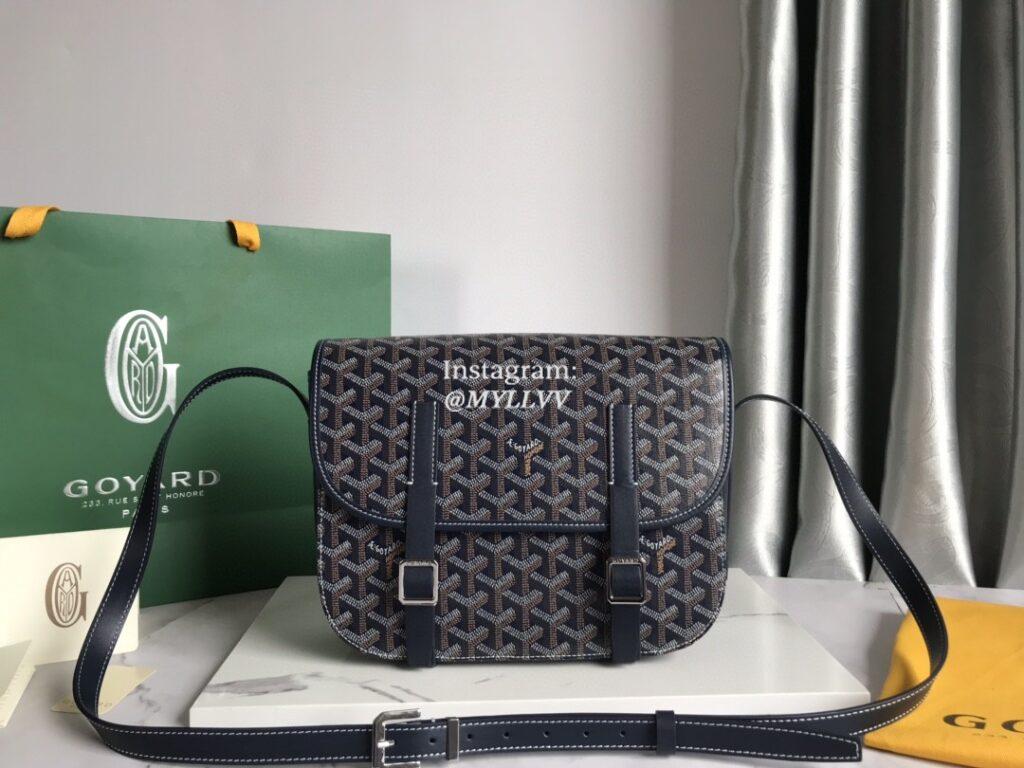 Top Quality Version:MYLLVV » Goyard Goyardine Canvas Chevroches Calfskin Cowhide Belvédère Large Messenger Bag Dark Blue