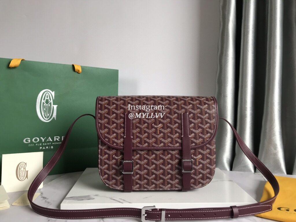 Top Quality Version:MYLLVV » Goyard Goyardine Canvas Chevroches Calfskin Cowhide Belvédère Large Messenger Bag Wine Red