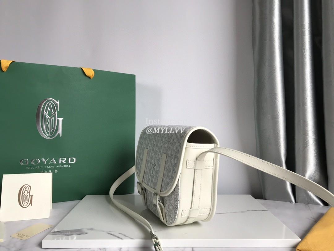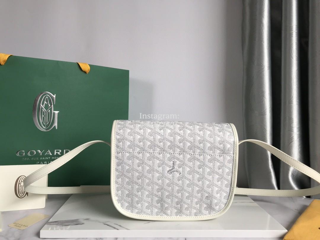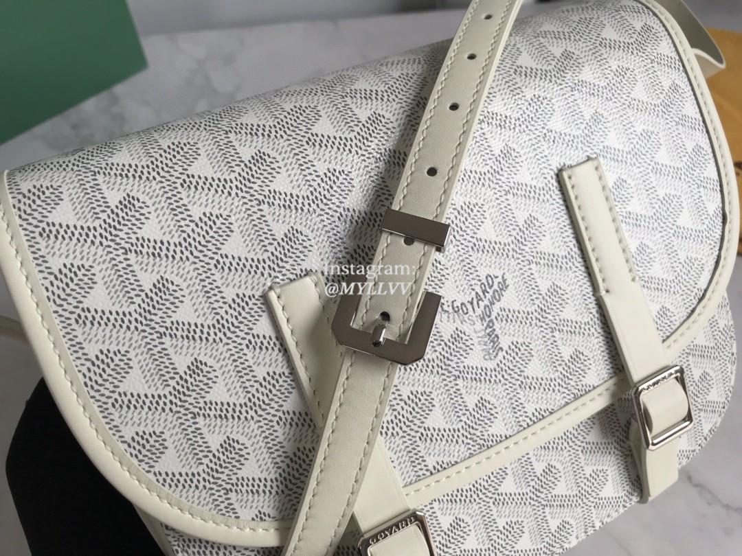 Top Quality Version:MYLLVV » Goyard Goyardine Canvas Chevroches Calfskin Cowhide Belvédère Small Messenger Bag White 098049
