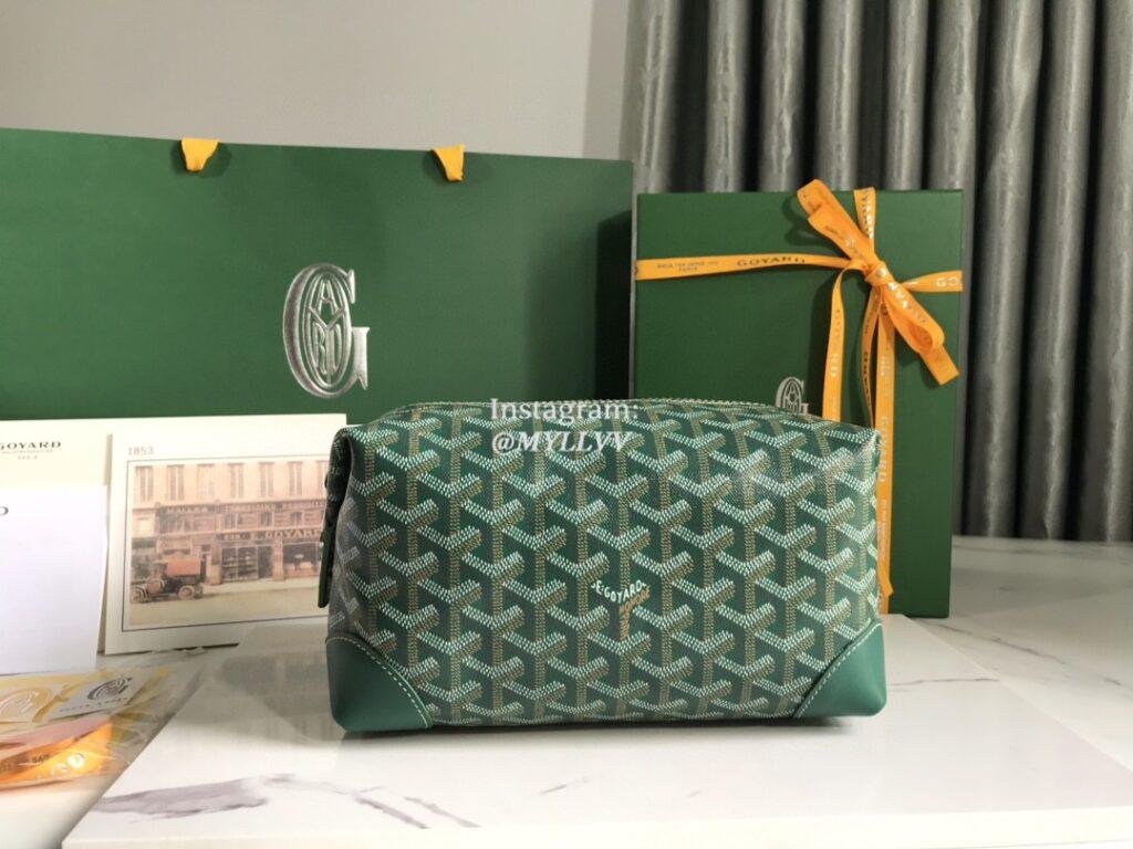 Top Quality Version:MYLLVV » Goyard Goyardine Canvas Chevroches Calfskin Cowhide Boeing Cosmetic Bag Green 020215