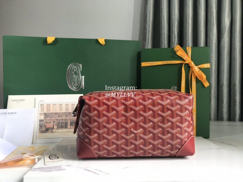 Top Quality Version:MYLLVV » Goyard Goyardine Canvas Chevroches Calfskin Cowhide Boeing Cosmetic Bag Red 020215