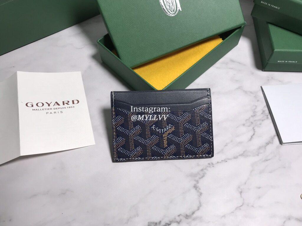 Top Quality Version:MYLLVV » Goyard Goyardine Canvas Chevroches Calfskin Cowhide Card Bag Dark Blue