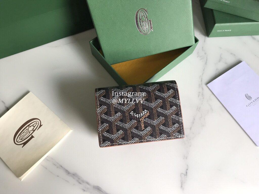 Top Quality Version:MYLLVV » Goyard Goyardine Canvas Chevroches Calfskin Cowhide Card Case Brown