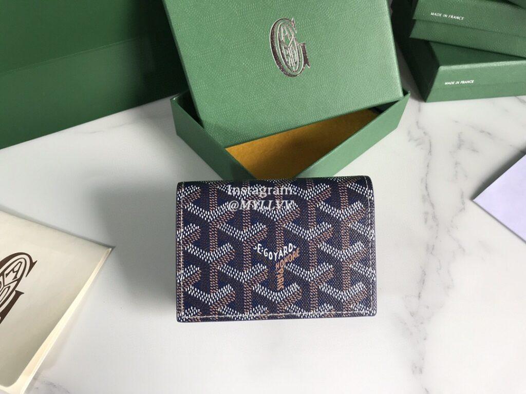 Top Quality Version:MYLLVV » Goyard Goyardine Canvas Chevroches Calfskin Cowhide Card Case Dark Blue