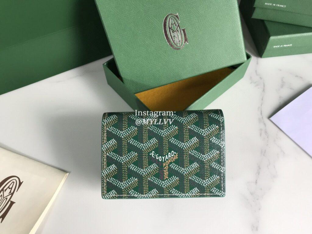 Top Quality Version:MYLLVV » Goyard Goyardine Canvas Chevroches Calfskin Cowhide Card Case Green