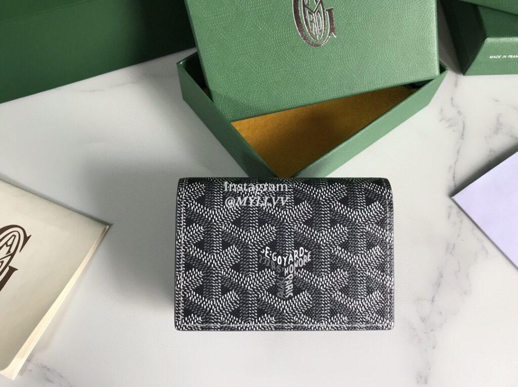 Top Quality Version:MYLLVV » Goyard Goyardine Canvas Chevroches Calfskin Cowhide Card Case Grey