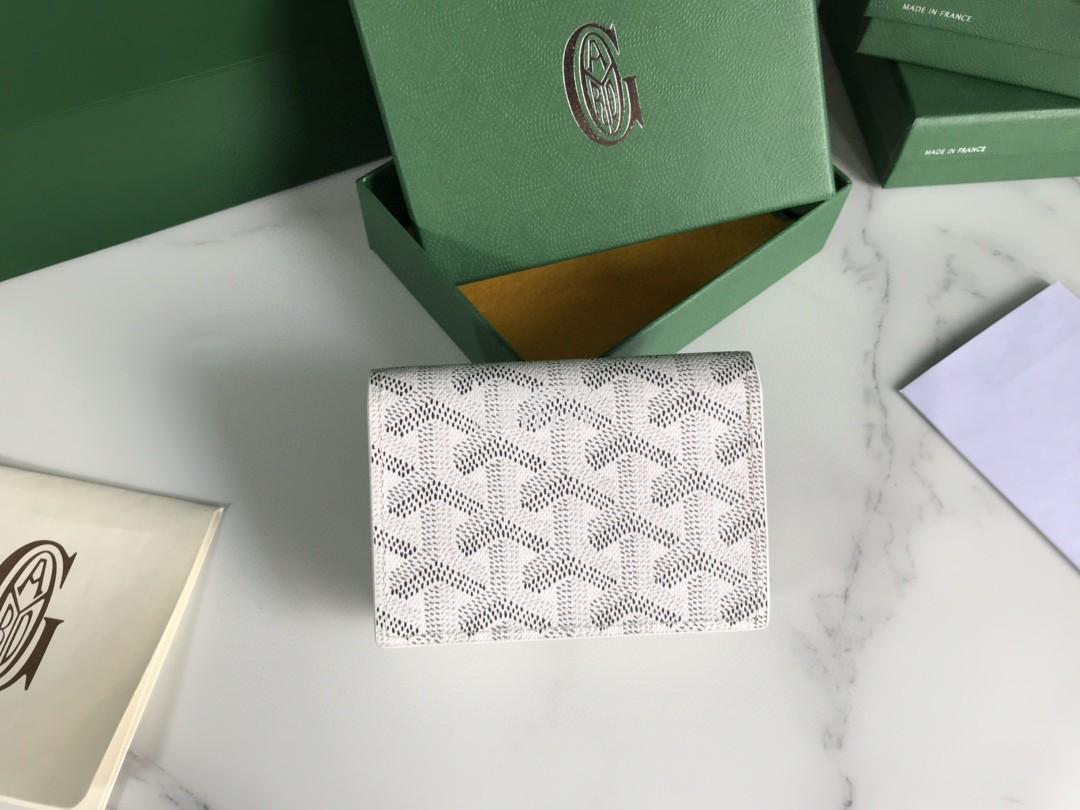 Top Quality Version:MYLLVV » Goyard Goyardine Canvas Chevroches Calfskin Cowhide Card Case White