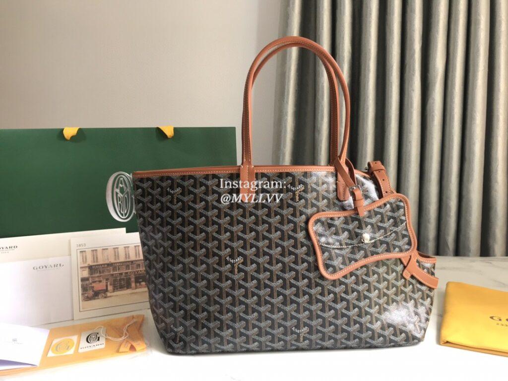 Top Quality Version:MYLLVV » Goyard Goyardine Canvas Chevroches Calfskin Cowhide Chien Gris & Pocket Pet Bag Brown