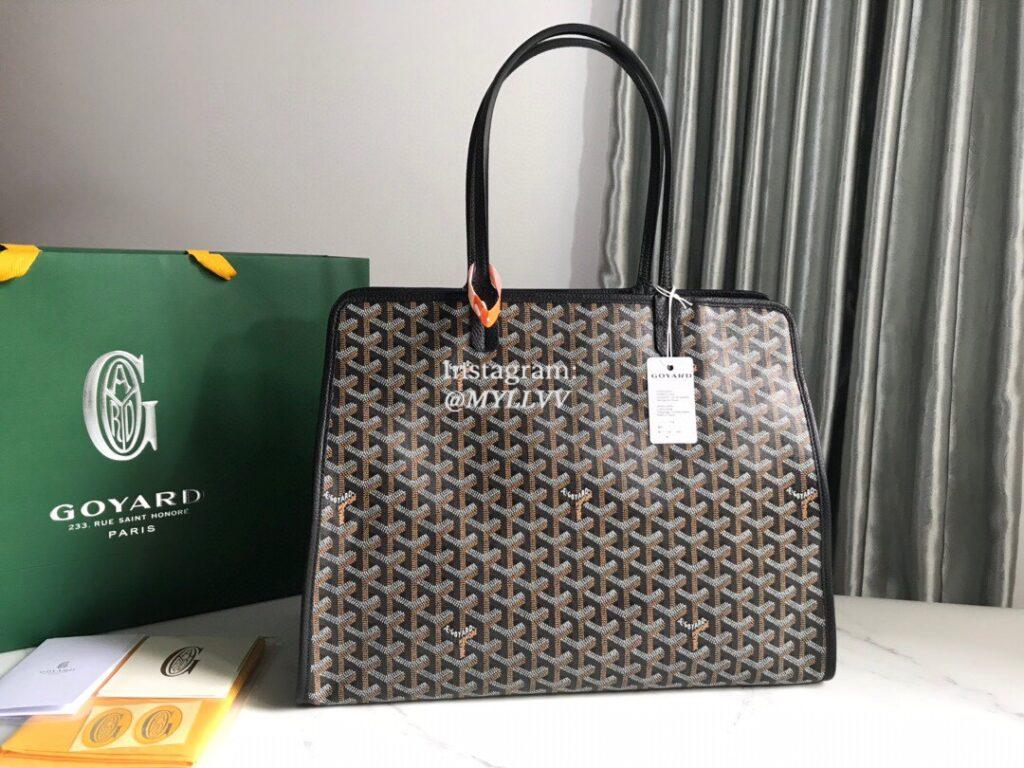 Top Quality Version:MYLLVV » Goyard Goyardine Canvas Chevroches Calfskin Cowhide Goyard Hardy Tote Bag Black