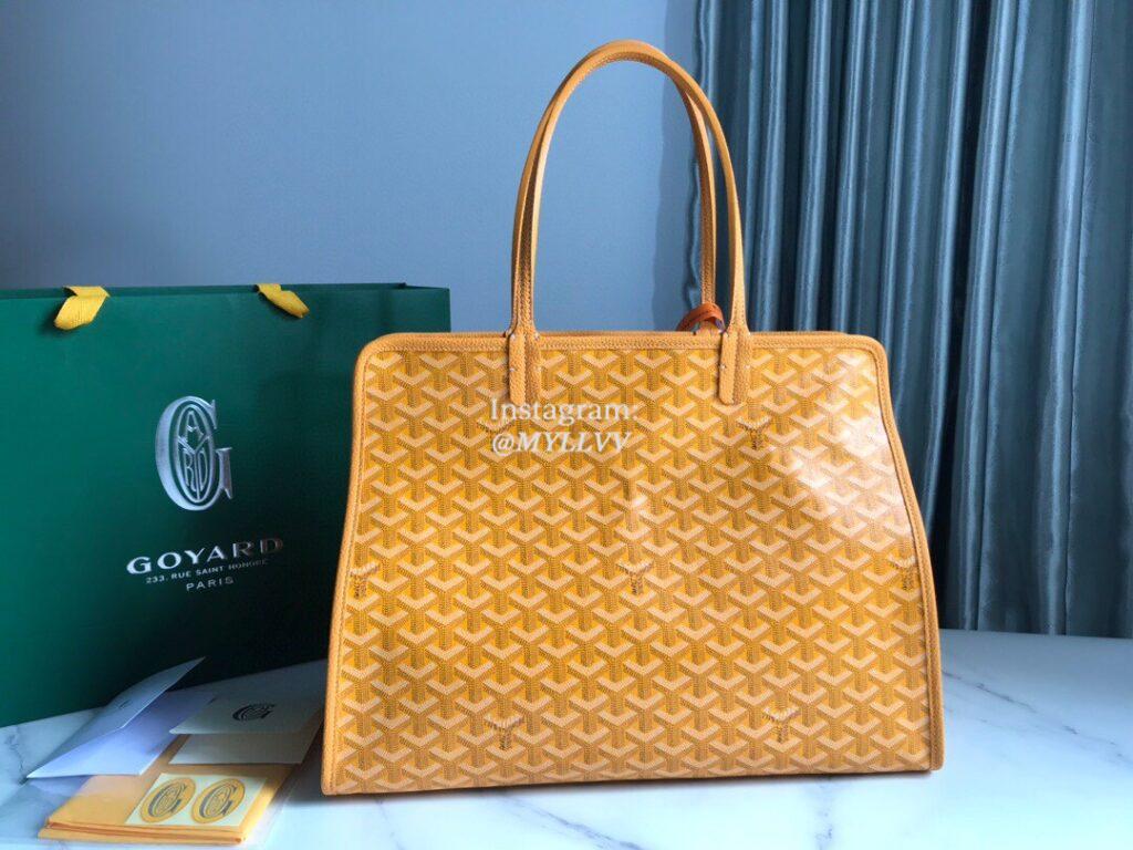 Top Quality Version:MYLLVV » Goyard Goyardine Canvas Chevroches Calfskin Cowhide Goyard Hardy Tote Bag Yellow