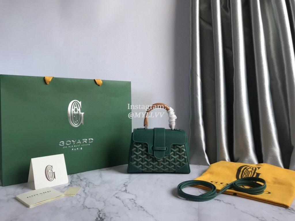 Top Quality Version:MYLLVV » Goyard Goyardine Canvas Chevroches Calfskin Cowhide Goyard Mini Saïgon Handle Bag Green