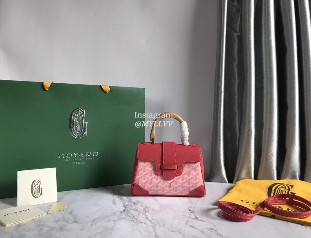 Top Quality Version:MYLLVV » Goyard Goyardine Canvas Chevroches Calfskin Cowhide Goyard Mini Saïgon Handle Bag Pink
