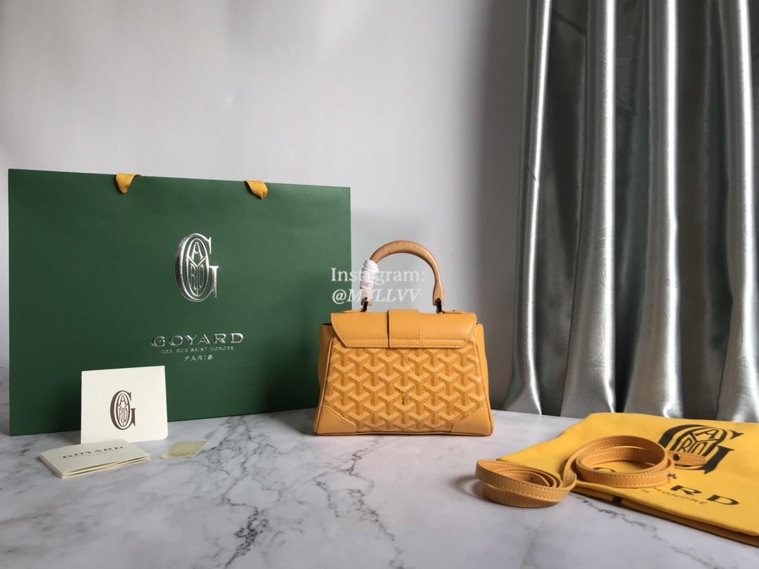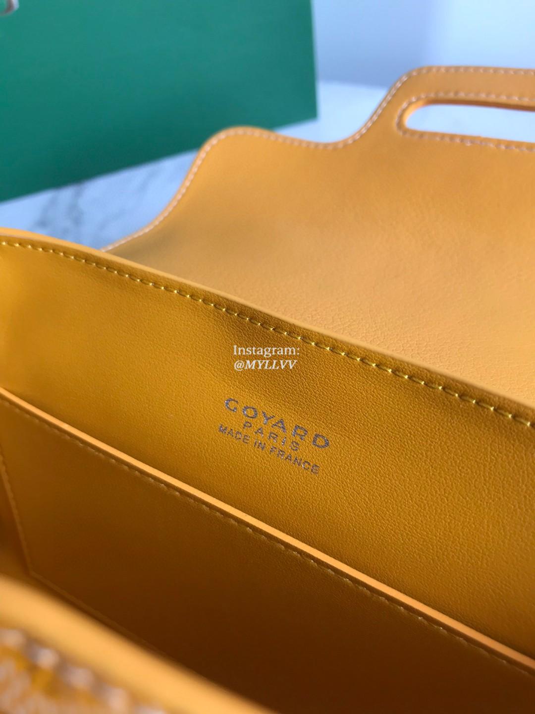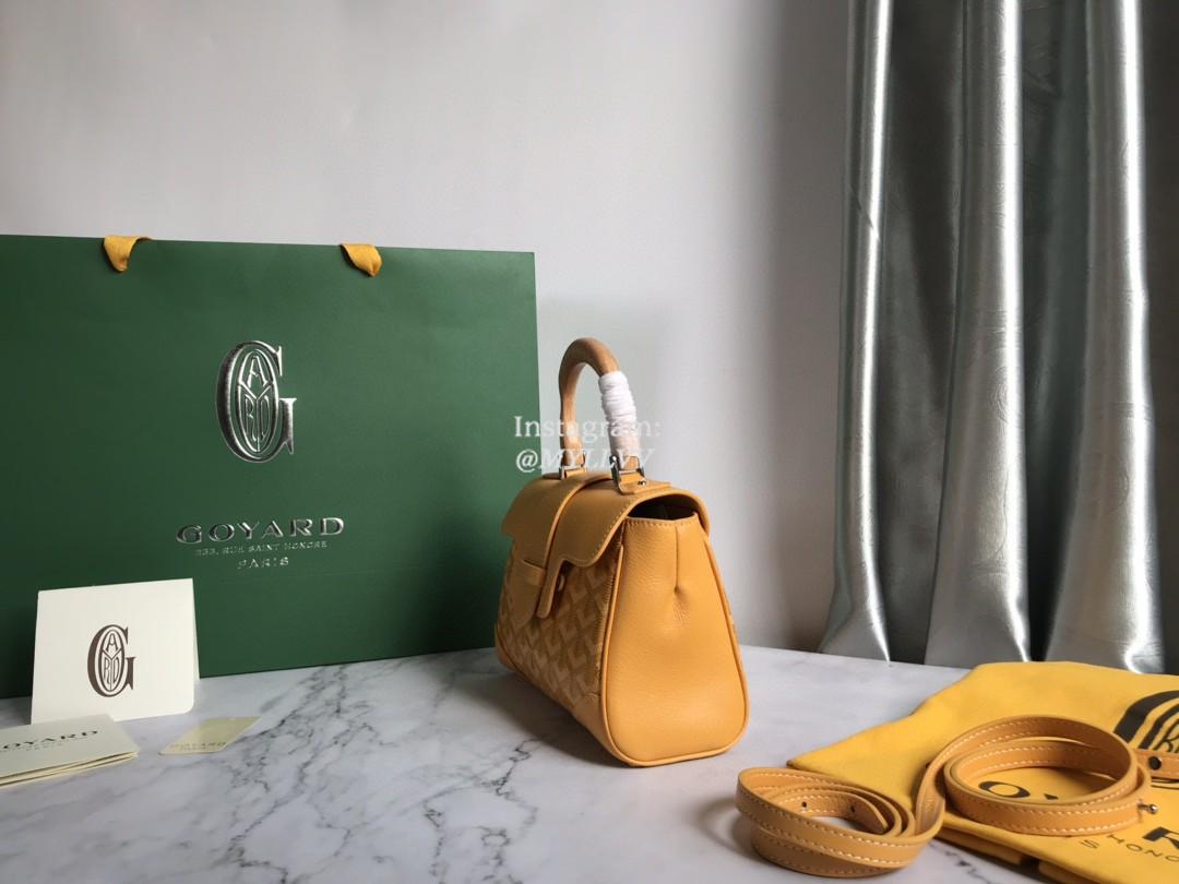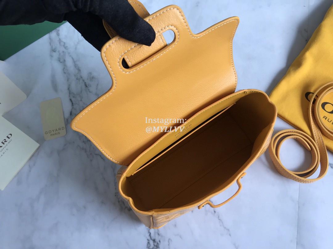 Top Quality Version:MYLLVV » Goyard Goyardine Canvas Chevroches Calfskin Cowhide Goyard Mini Saïgon Handle Bag Yellow