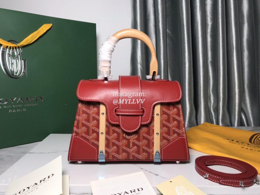 Top Quality Version:MYLLVV » Goyard Goyardine Canvas Chevroches Calfskin Cowhide Goyard Saïgon Mini Handle Bag Red