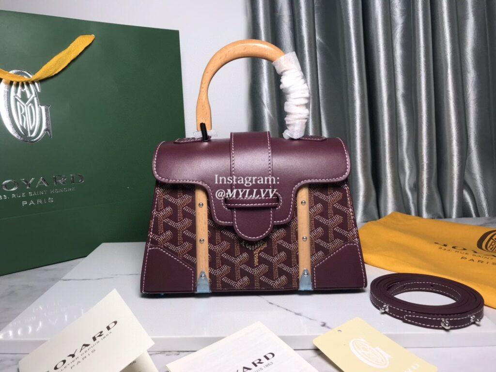 Top Quality Version:MYLLVV » Goyard Goyardine Canvas Chevroches Calfskin Cowhide Goyard Saïgon Mini Handle Bag Wine Red