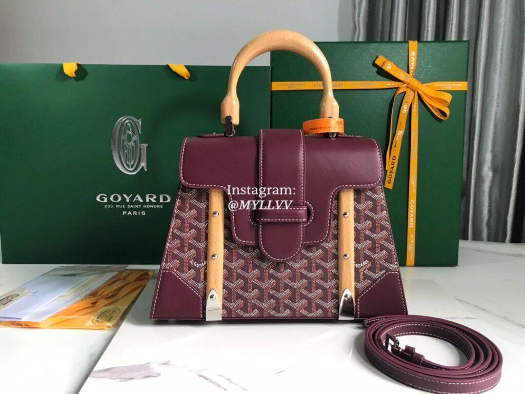 Top Quality Version:MYLLVV » Goyard Goyardine Canvas Chevroches Calfskin Cowhide Goyard Saïgon PM Handle Bag Wine Red