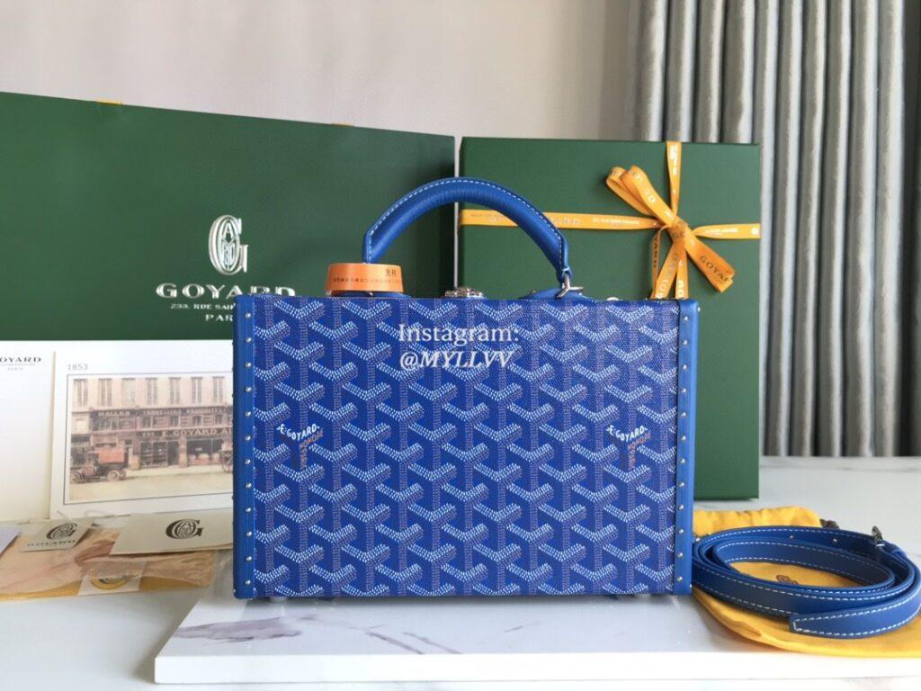 Top Quality Version:MYLLVV » Goyard Goyardine Canvas Chevroches Calfskin Cowhide Grand Hôtel Box Bag Blue 020015