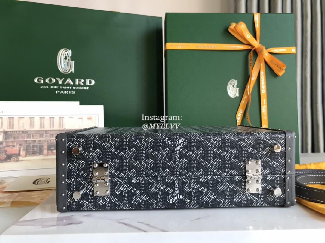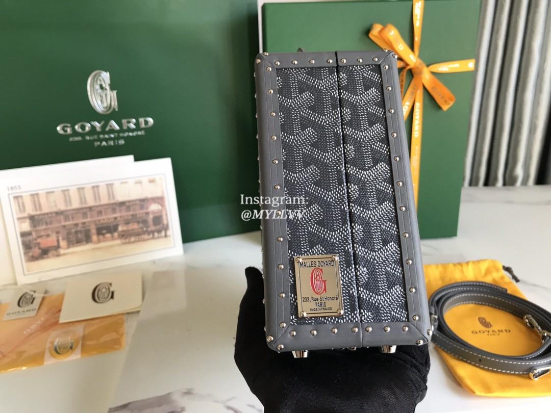 Top Quality Version:MYLLVV » Goyard Goyardine Canvas Chevroches Calfskin Cowhide Grand Hôtel Box Bag Grey 020015