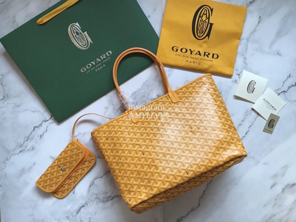 Top Quality Version:MYLLVV » Goyard Goyardine Canvas Chevroches Calfskin Cowhide Isabelle Tote Bag Yellow