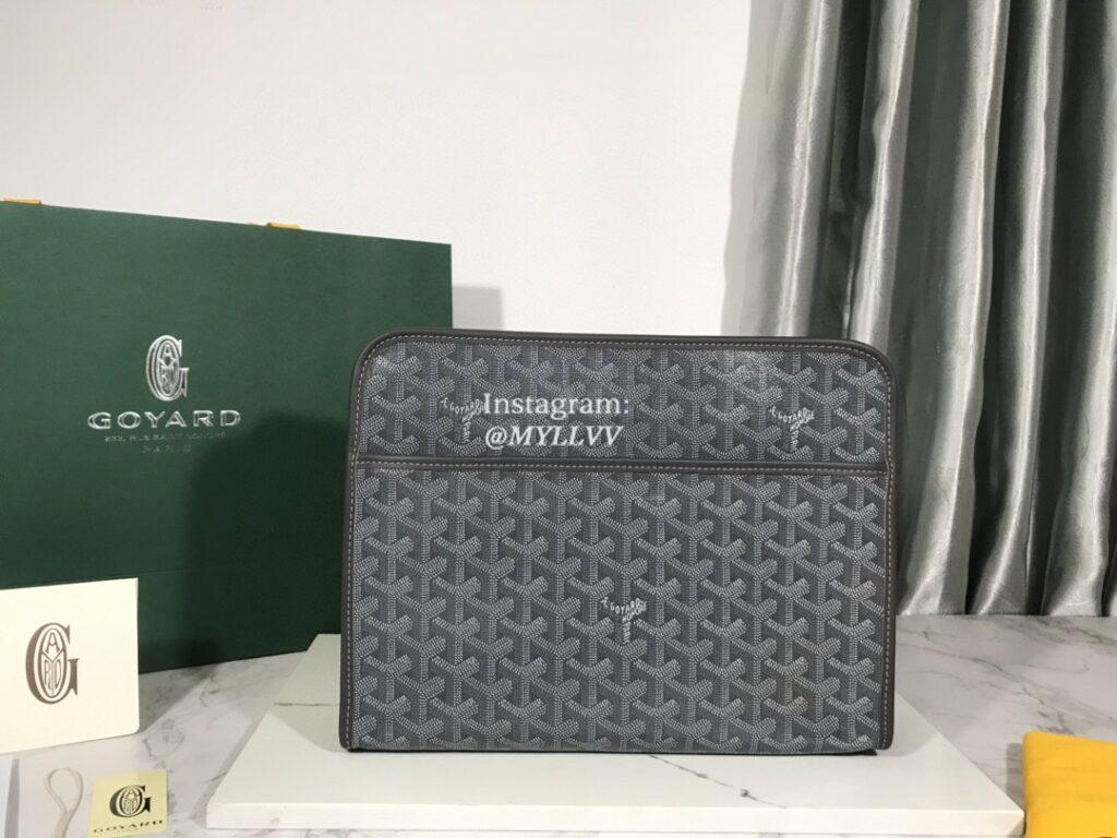 Top Quality Version:MYLLVV » Goyard Goyardine Canvas Chevroches Calfskin Cowhide Jouvence GM Wash Bag Grey